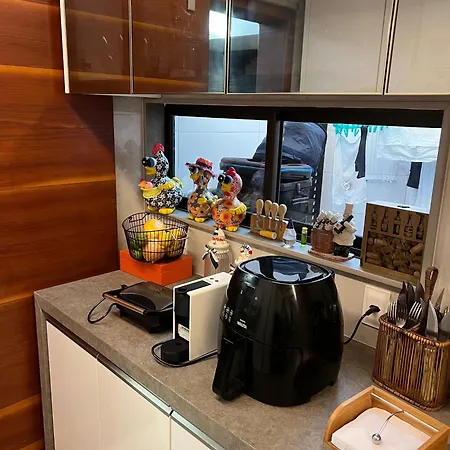 Esta casa de férias dispõe de cozinha equipada com máquina de café/chá, refrigerador e utensílios de cozinha. - ❓